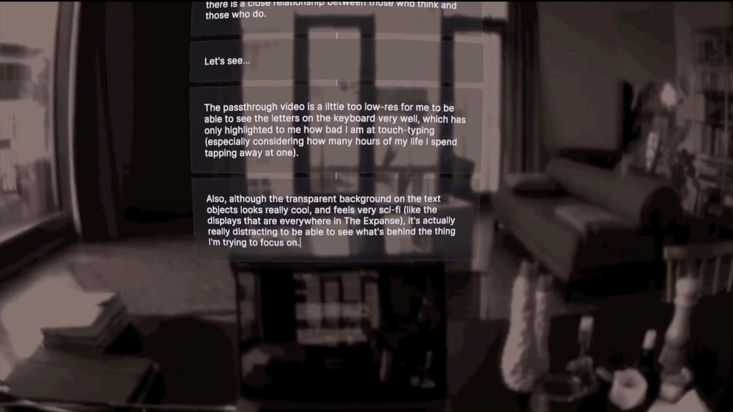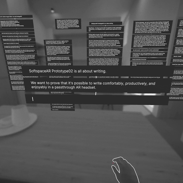 Specifically, I wanted to prove that it's possible to write comfortably, productively, and enjoyably inside a passthrough augmented reality app.